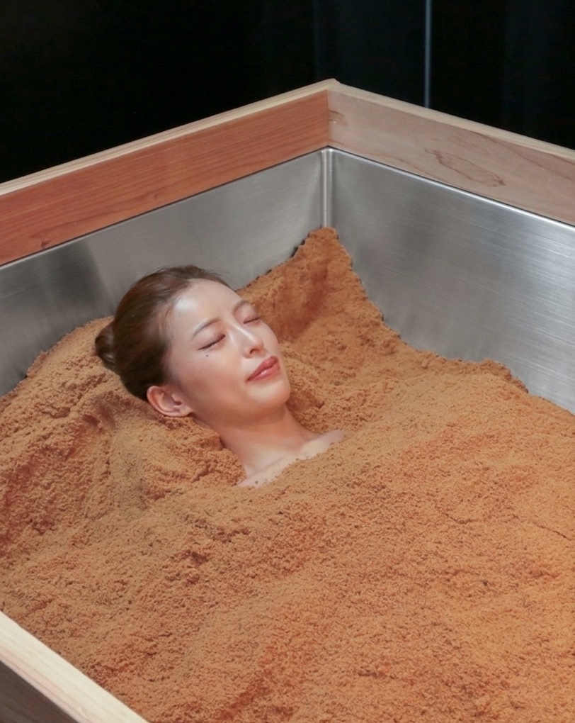 3階に併設されている加圧トレーニングで血流を促し、筋肉にほどよい刺激を入れて身体を目覚めさせた後、酵素風呂で深部から温めて巡りを高めます。